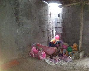 • Todo empezó cuando decidimos formar una familia decidimos comprar un terrenito donde solamente teníamos 2 cuartos de lámina para muchos era muy poco pero para nosotros era nuestro hogar lleno de amor como no teníamos mucho espacio tuvimos que acomodar los juguetes de mi niña en el segundo cuarto pero como no tenía piso se ensuciaban los juguetes y con la lluvia se mojaban , pero hoy en día tenemos nuestra casa mejor que la de antes ,donde mis hijas pueden jugar libremente sin ensuciarse sin que sus juguetes se echen a perder y le doy gracias a Dios