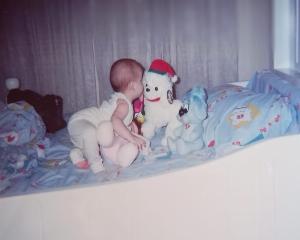 • Así se veía mi hija en su primer navidad… La pasamos muy bien ella, mi mamá y yo, y ese peluche azul se convirtió en su compañero con años, creo que incluso hoy, que es una mujer de 25 años, no puede separarse de su fiel compañero.